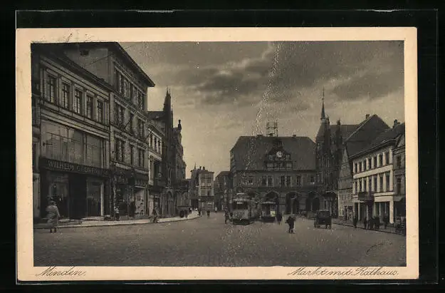 AK Minden i. W., Strassenbahnen auf dem Marktplatz