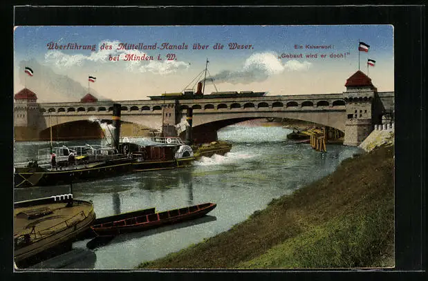 AK Minden i. W., Überführung des Mittelland-Kanals über die Weser
