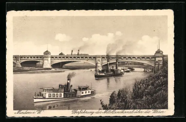 AK Minden i. W., Überführung des Mittelland-Kanals über die Weser