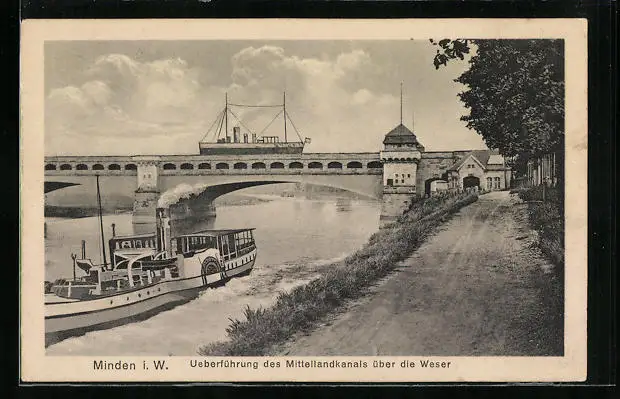 AK Minden i. W., Überführung des Mittelland-Kanals über die Weser