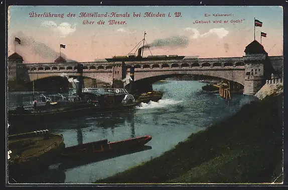 AK Minden i. W., Überführung des Mittelland-Kanals über die Weser