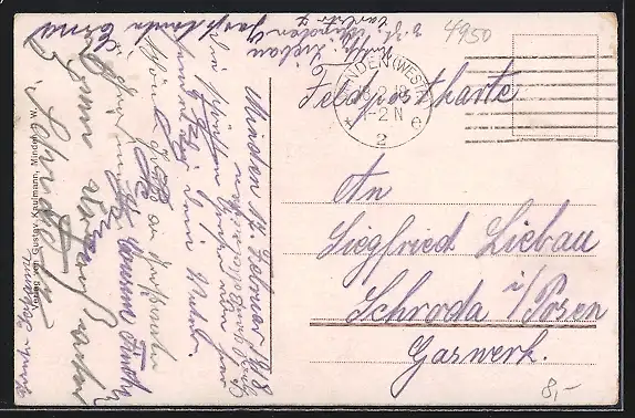 alte Ansichtskarte, gelaufen 1918, Eckknicke unten, Abriebspuren li., guter Zustand
