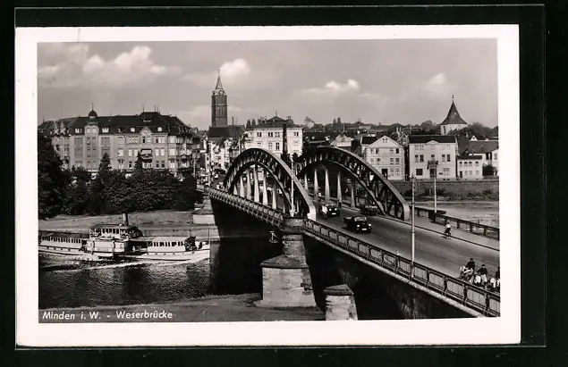 AK Minden i. W., Weserbrücke mit Stadtblick