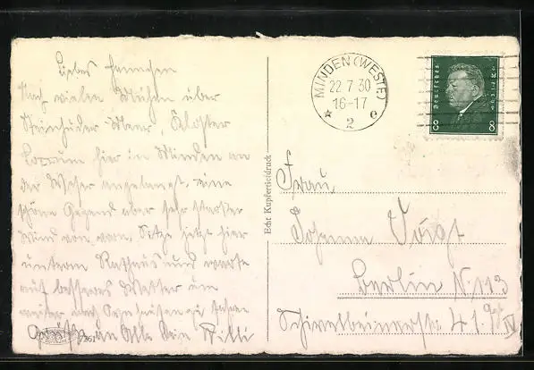 alte Ansichtskarte, gelaufen 1930, guter Zustand