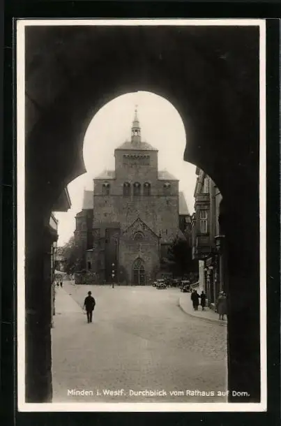 AK Minden i. Westf., Durchblick vom Rathaus auf Dom