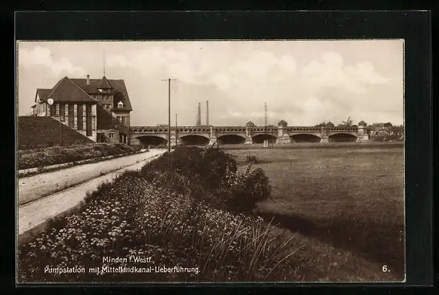AK Minden i. Westf., Pumpstation mit Mittellandkanal-Ueberführung