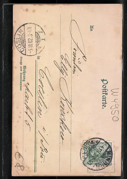 gelaufen 1902, Eckknicke li. oben u. re. unten, guter Zustand