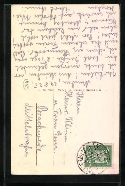 alte Ansichtskarte, gelaufen 1925, Bugspur li. oben, guter Zustand