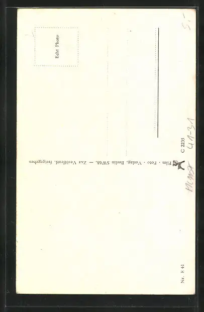 Personenbezogene Daten auf der Rückseite der Karte wurden durch blauen Textmarker unkenntlich gemacht. Die blauen Stellen sind auf die Vorderseite durchgeweicht und wirken sich negativ auf das Postkartenfoto aus
