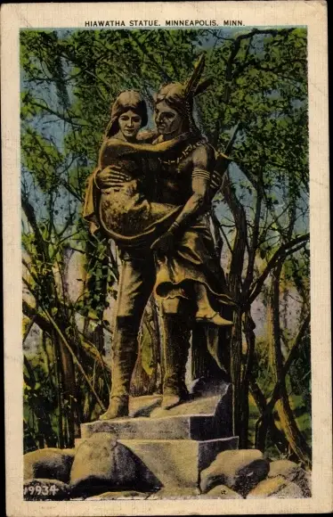 AK Minneapolis Minnesota USA, Hiawatha-Statue