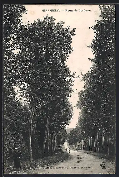 AK Mirambeau, Route de Bordeaux bordée d`arbres avec passants