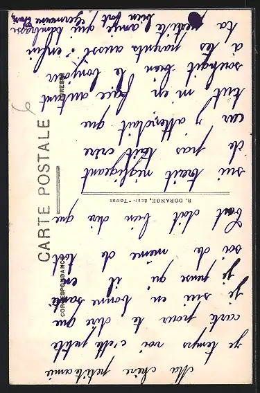 Personenbezogene Daten auf der Rückseite der Karte wurden durch blauen Textmarker unkenntlich gemacht. Die blauen Stellen sind auf die Vorderseite durchgeweicht und wirken sich negativ auf das Postkartenfoto aus