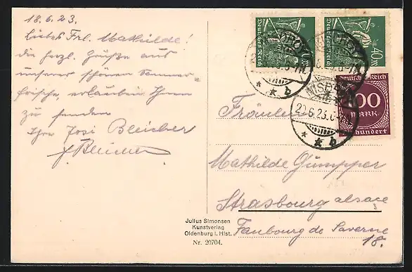 alte Ansichtskarte, gelaufen 1923, guter Zustand