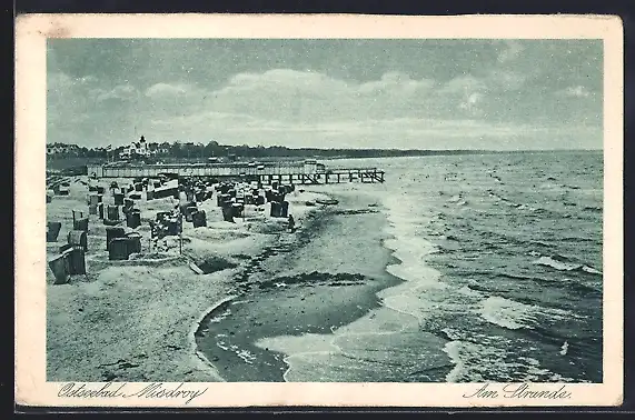 AK Misdroy, Ostseestrand mit Strandkörben und Umkleidekabinen