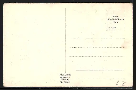 Personenbezogene Daten auf der Rückseite der Karte wurden durch blauen Textmarker unkenntlich gemacht. Die blauen Stellen sind auf die Vorderseite durchgeweicht und wirken sich negativ auf das Postkartenfoto aus