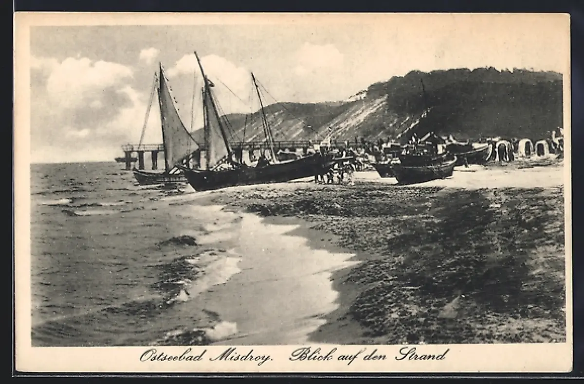 AK Misdroy, Segelschiffe am Strand