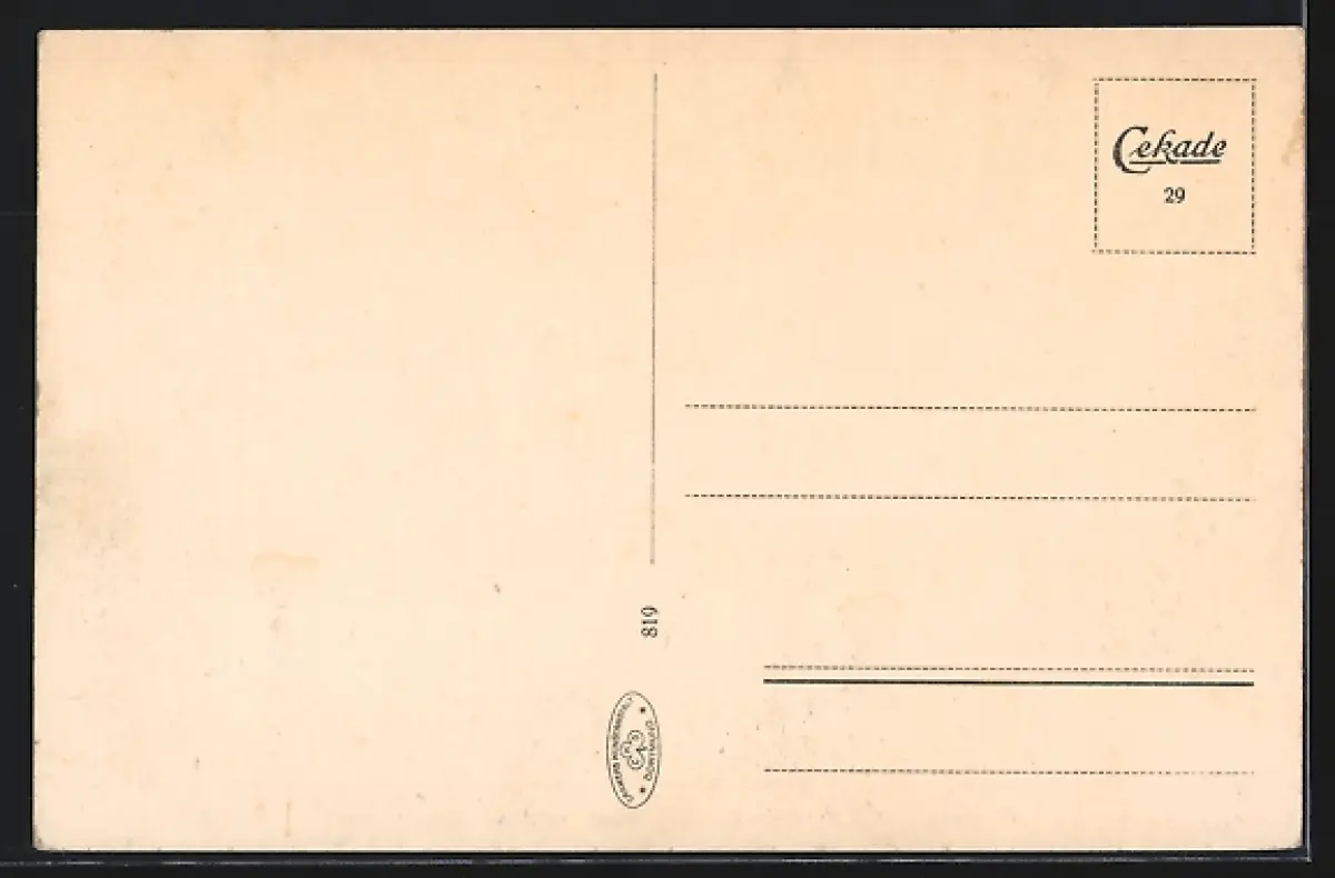 Personenbezogene Daten auf der Rückseite der Karte wurden durch blauen Textmarker unkenntlich gemacht. Die blauen Stellen sind auf die Vorderseite durchgeweicht und wirken sich negativ auf das Postkartenfoto aus
