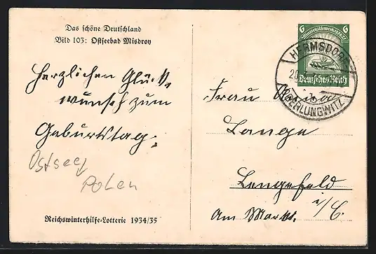 AK Misdroy, Strandpartie, Ganzsache WHW Winterhilfswerk 1934-35