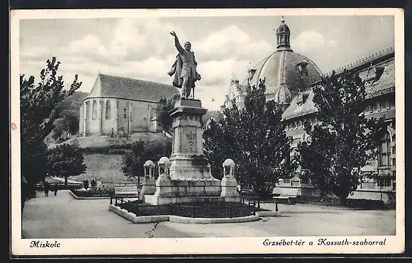 AK Miskolc, Erzsebet-ter a Kossuth-szoborral