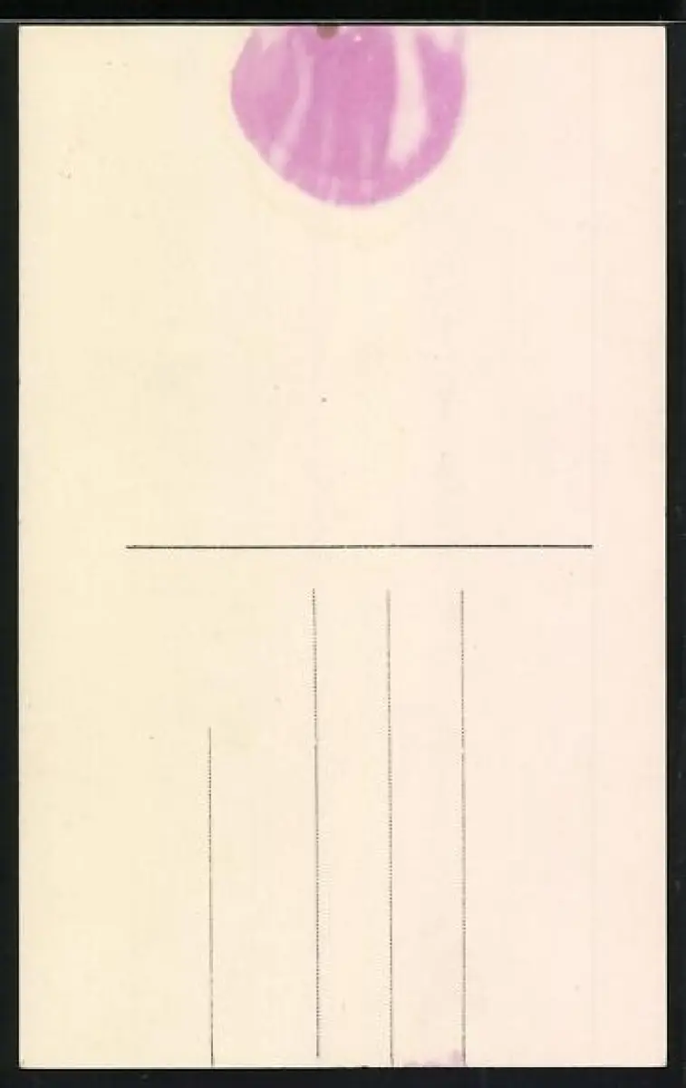 Personenbezogene Daten auf der Rückseite der Karte wurden durch blauen Textmarker unkenntlich gemacht. Die blauen Stellen sind auf die Vorderseite durchgeweicht und wirken sich negativ auf das Postkartenfoto aus