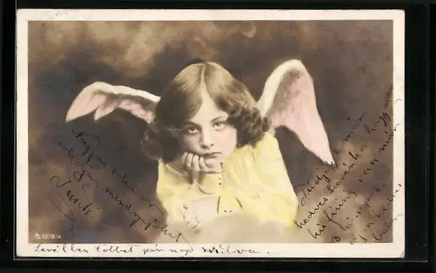 AK Missmutig blickender kleiner Engel