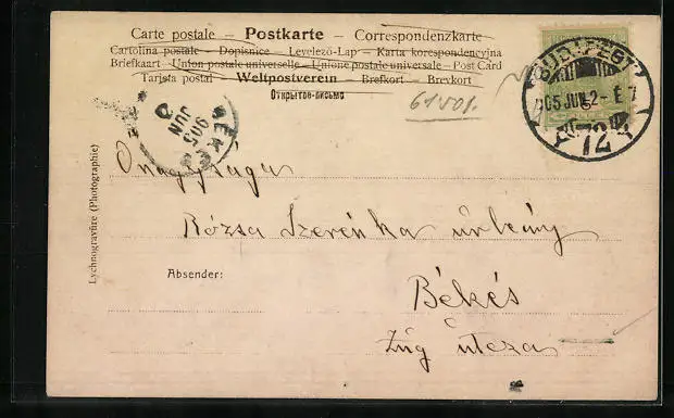 alte Ansichtskarte, gelaufen 1905, guter Zustand