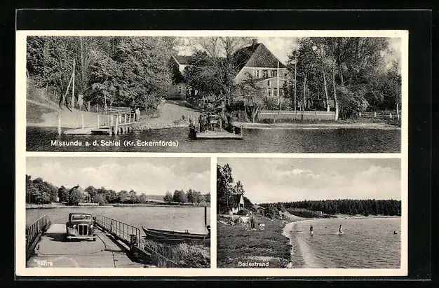 AK Missunde a. d. Schlei, Fähre, Partie am Badestrand