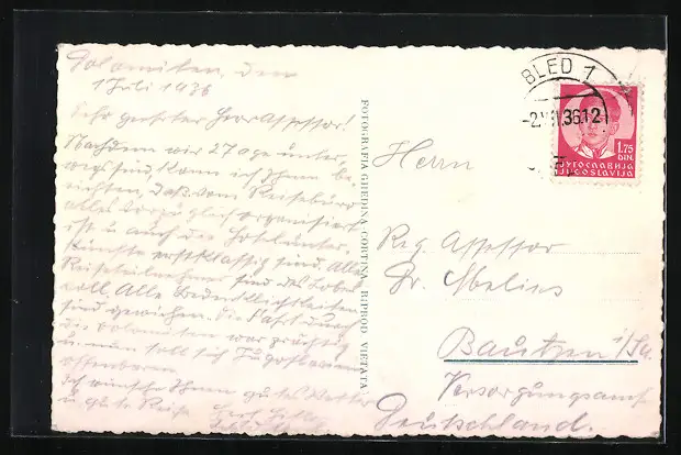 alte Ansichtskarte, gelaufen 1936, guter Zustand