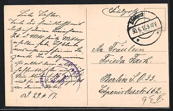 alte Ansichtskarte, gelaufen 1917, guter Zustand