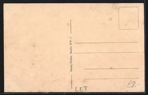 Personenbezogene Daten auf der Rückseite der Karte wurden durch blauen Textmarker unkenntlich gemacht. Die blauen Stellen sind auf die Vorderseite durchgeweicht und wirken sich negativ auf das Postkartenfoto aus