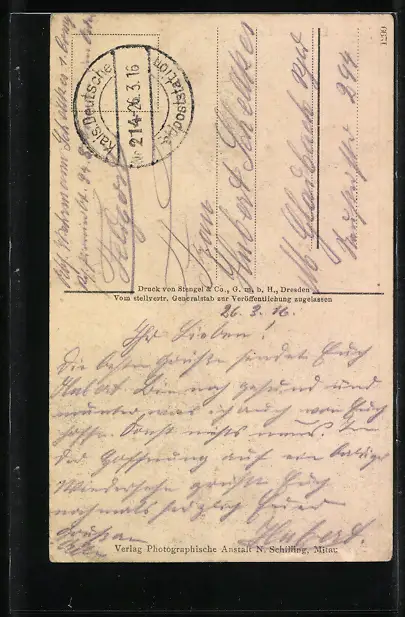alte Ansichtskarte, gelaufen 1916, Eckknick re. unten, guter Zustand