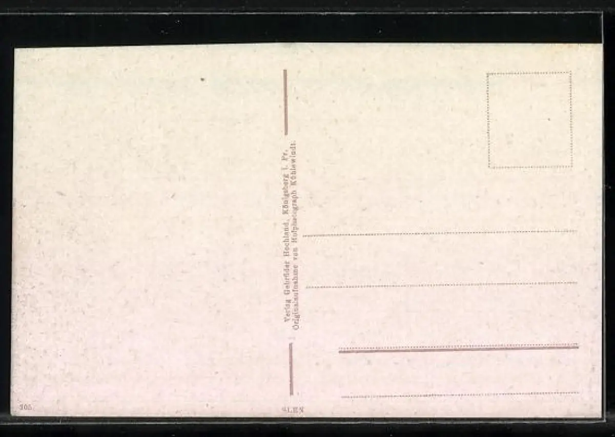 Personenbezogene Daten auf der Rückseite der Karte wurden durch blauen Textmarker unkenntlich gemacht. Die blauen Stellen sind auf die Vorderseite durchgeweicht und wirken sich negativ auf das Postkartenfoto aus