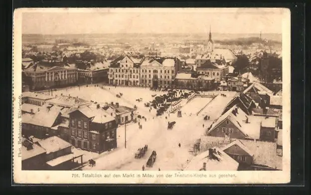 AK Mitau, Ortspartie, Marktplatz aus der Vogelschau