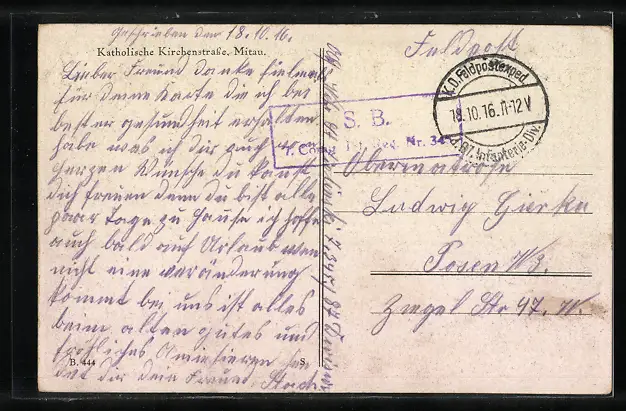 alte Ansichtskarte, gelaufen 1916, Eckknick re. unten, guter Zustand