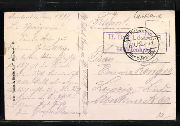alte Ansichtskarte, gelaufen als Feldpost 1917, guter Zustand