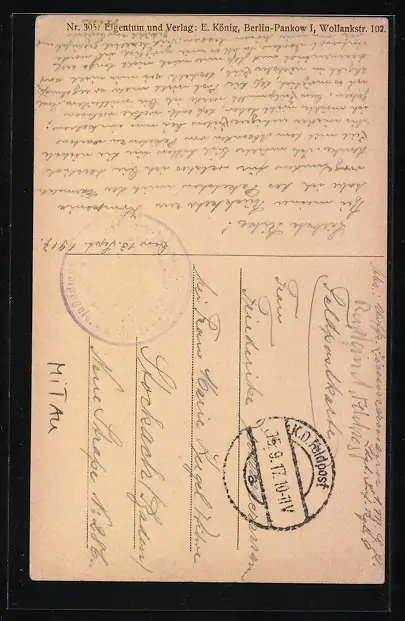 alte Ansichtskarte, gelaufen 1917 als Feldpost, guter Zustand