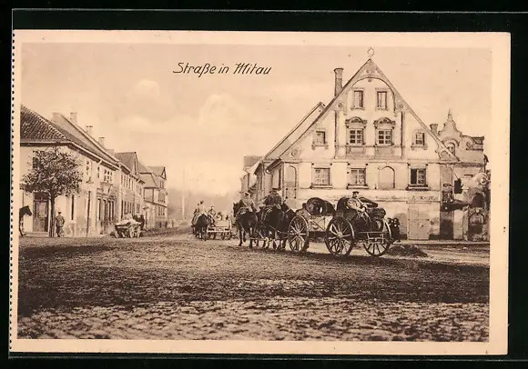 AK Mitau, Strassenpartie mit Pferdekutsche