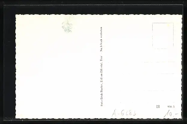 Personenbezogene Daten auf der Rückseite der Karte wurden durch blauen Textmarker unkenntlich gemacht. Die blauen Stellen sind auf die Vorderseite durchgeweicht und wirken sich negativ auf das Postkartenfoto aus