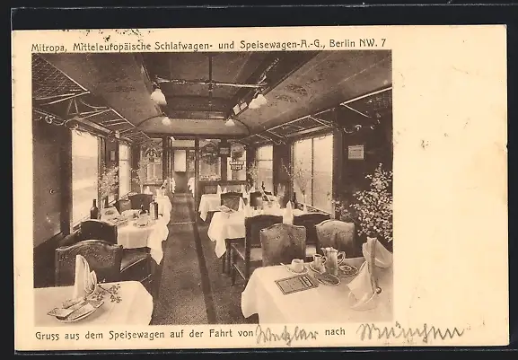 AK Mitropa Speisewagen, Innenansicht