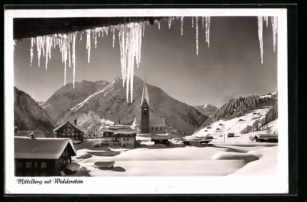 AK Mittelberg, Ortsansicht im Winter mit Widderstein