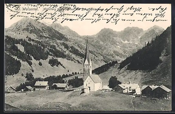 AK Mittelberg, Ortsansicht mit den Schafalpköpfen