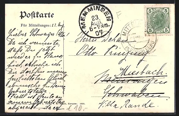 alte Ansichtskarte, gelaufen 1907, Stempelspur, guter Zustand