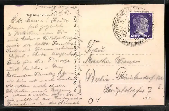 alte Ansichtskarte, gelaufen 1943, guter Zustand