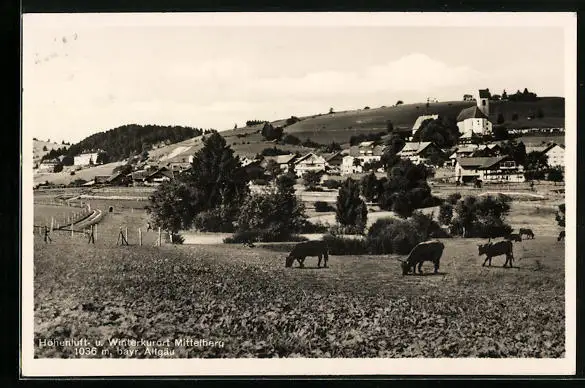 AK Mittelberg /bayr. Allgäu, Ortsansicht mit Kuhweide