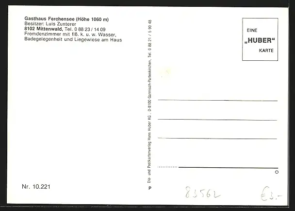 AK Mittenwald, Gasthaus Ferchensee, Bes. Luis Zunterer