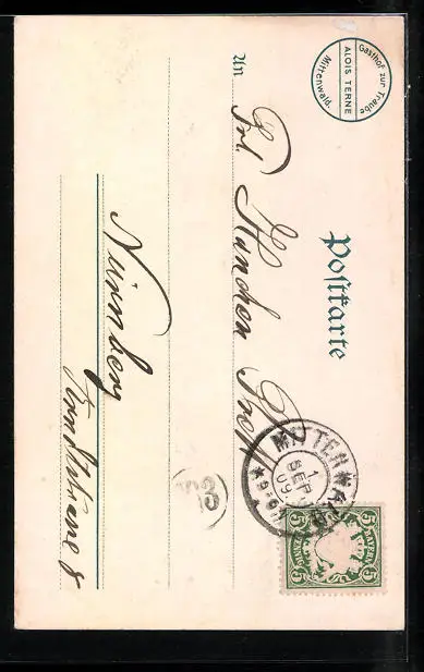 alte Ansichtskarte, gelaufen 1909, guter Zustand