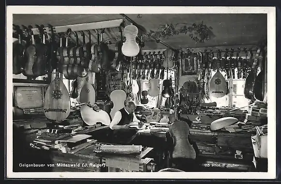 AK Mittenwald, Geigenbau-Werkstätte, Innenansicht, Handwerk