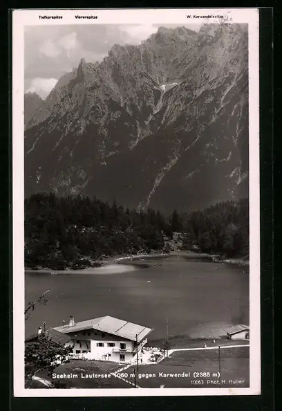 AK Mittenwald, Lautersee, Seeheim gegen Karwendel