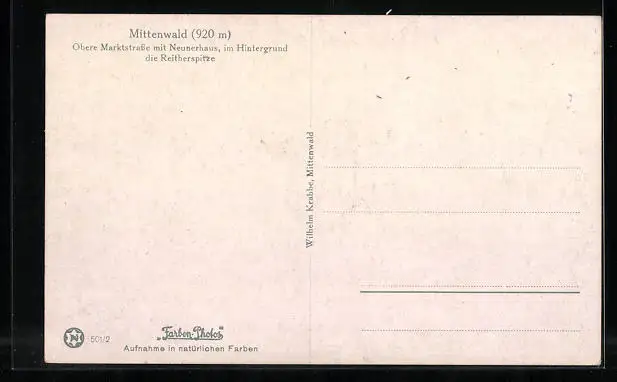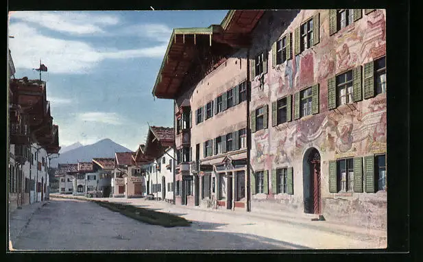 AK Mittenwald, Obere Marktstrasse mit Neunerhaus und Reitherspitze im Hintergrund