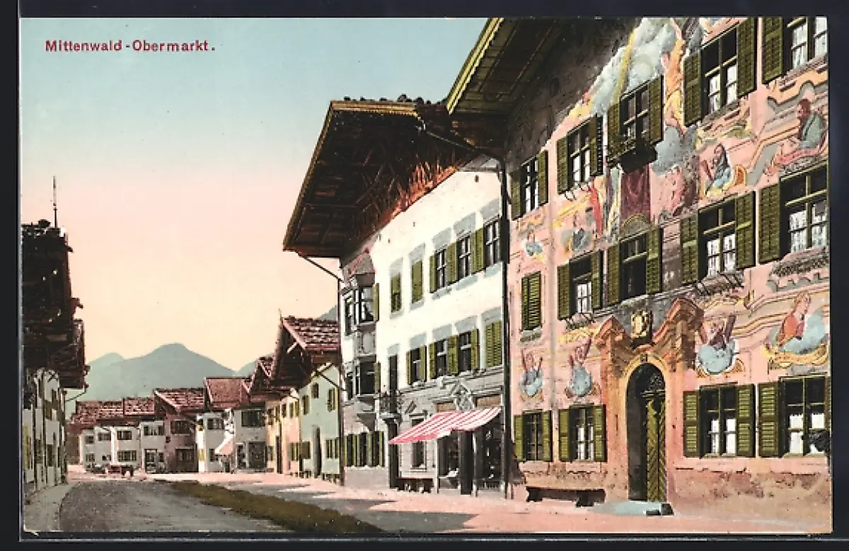 AK Mittenwald-Obermarkt, Bemalte Häuserfassaden